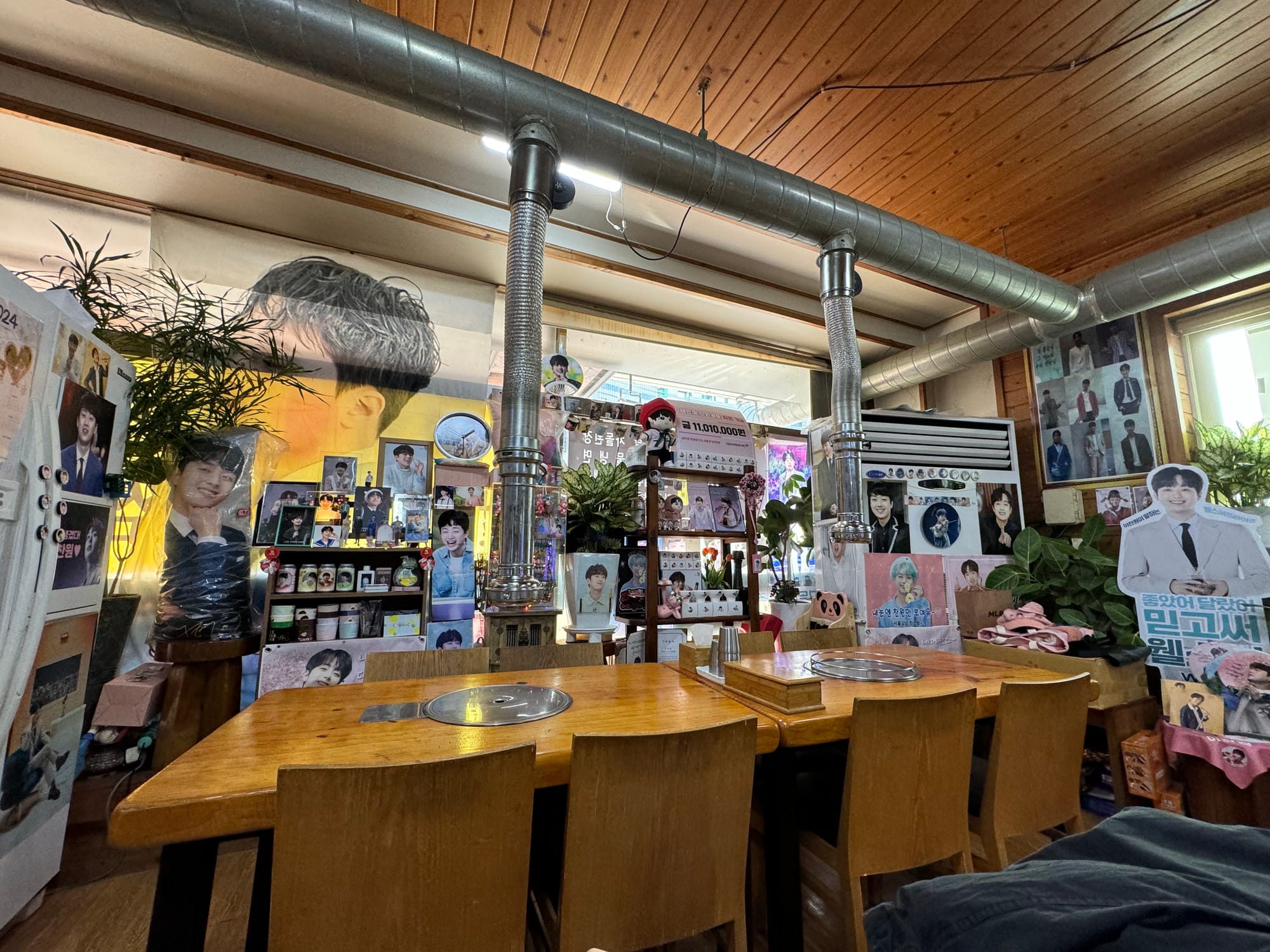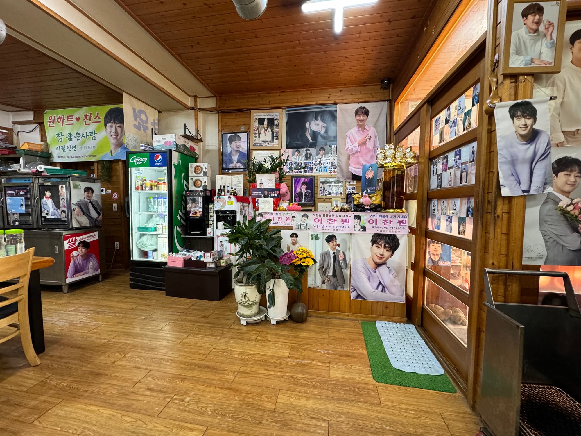 Jirisan(지리산) in Yangchon-eup(양촌읍) caught my attention due to the prominent X-banner of trot singer Lee Chan-won at the entrance. I initially mistook it for a franchise featured in a TV show, but I later learned they are unrelated. Upon entering, the interior felt like a local fan club headquarters, filled with his photos and fan items, creating a very unique and interesting vibe for any visitor.