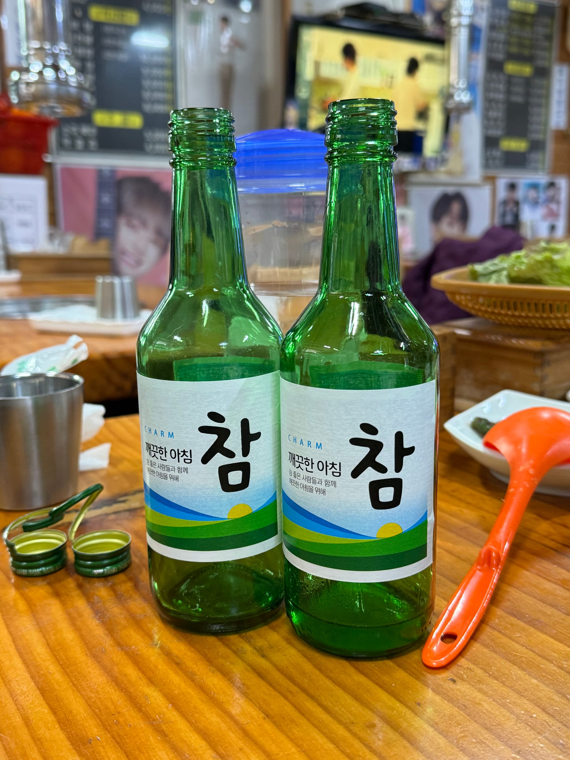 The service Doenjang-jjigae(된장찌개) was unexpectedly delicious, offering a deep and rich flavor that paired perfectly with rice. Another surprise was receiving two bottles of Cham(참) soju instead of the usual brand. It turns out that Lee Chan-won is the model for the Cham(참) brand, making this choice very fitting for the restaurant's theme.