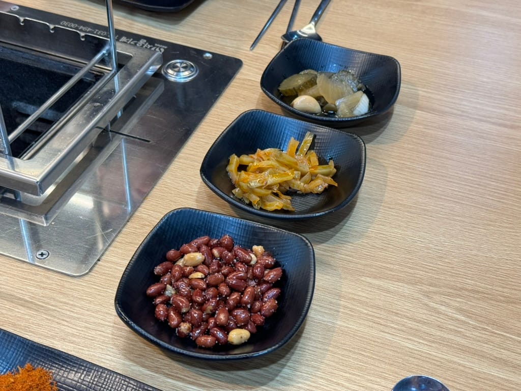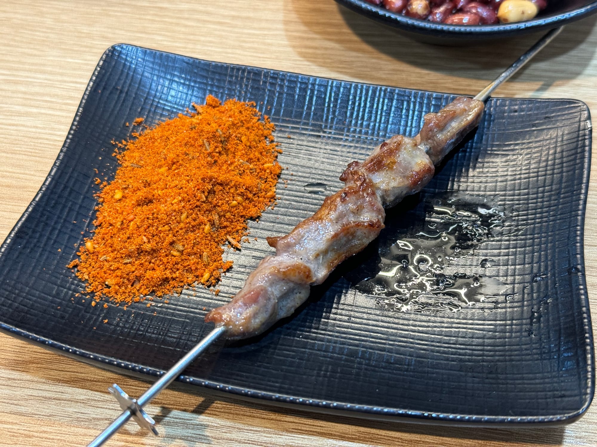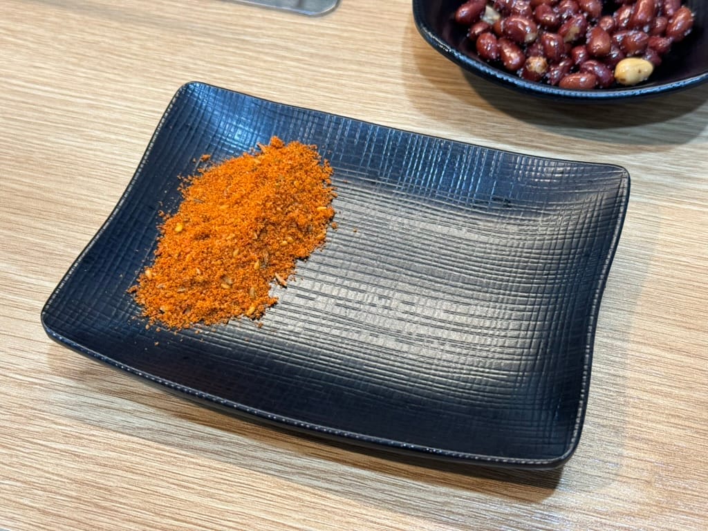 The meal began with simple but essential side dishes. I personally enjoy the Chinese-style roasted peanuts; picking them up one by one with chopsticks is quite fun. Along with the peanuts, the signature lamb skewer seasoning was served, ready to be paired with the meat soon.