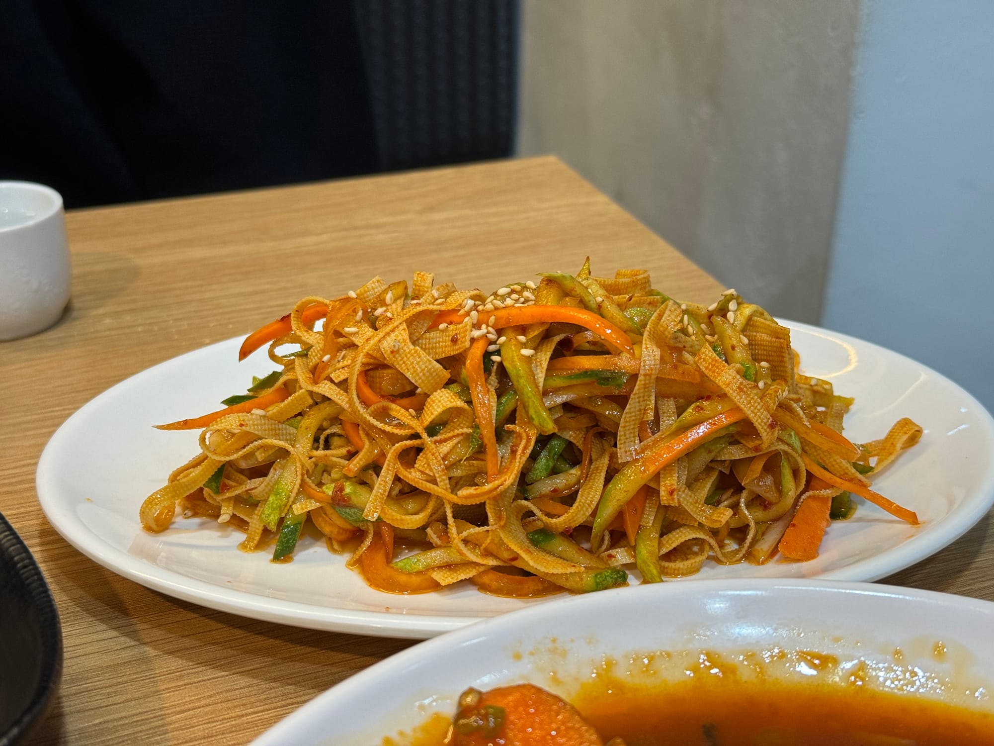 I also tried Liuroudan(류육단) for the first time. It is a dish made by frying pork loin and sautéing it in a Chinese-style sauce. Additionally, I added one more serving of Yang-galbi(양갈비) and received a complimentary dish of Geon-dubu-bokkeum(건두부볶음) as a service. It was a truly satisfying and full meal.