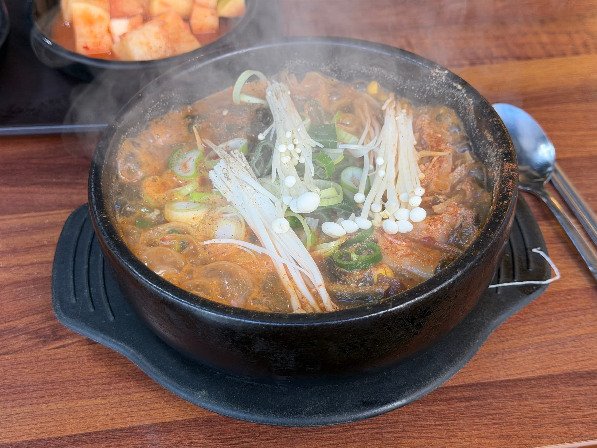 For readers unfamiliar with Korean cuisine, Sundae-gukbap(순대국밥) is a traditional soup made with Korean blood sausage (sundae) and pork parts, served with rice. It is considered a comforting and affordable everyday meal in Korea. At the Janggi Branch, the menu offered a broader range of Guk-bap(국밥) options compared to the main branch. The order included Ttaro-gukbap(따로국밥), where rice and soup are served separately, and So-naejang-gukbap(소내장국밥), a variation made with beef intestines. Unlike the simplified menu of the main branch, this location provided a wider selection tailored to different preferences.