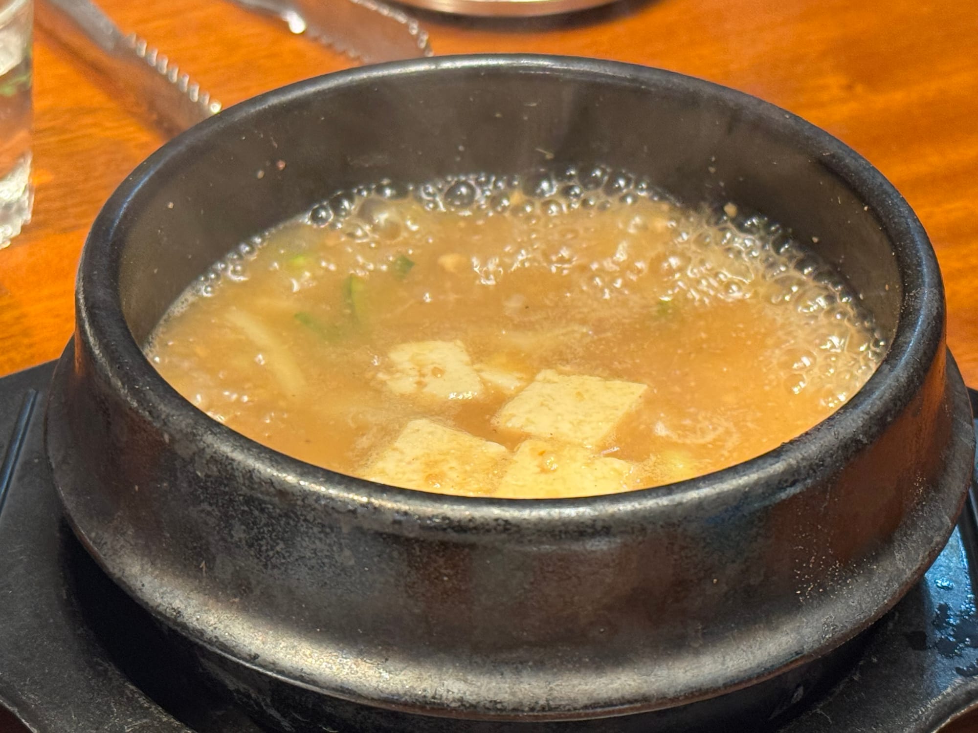 Once cooked, the Dwaeji-galbi(돼지갈비) tasted like any other average pork ribs. The Doenjang-jjigae(된장찌개), which was ordered separately, also offered a very standard flavor without any particular highlights.