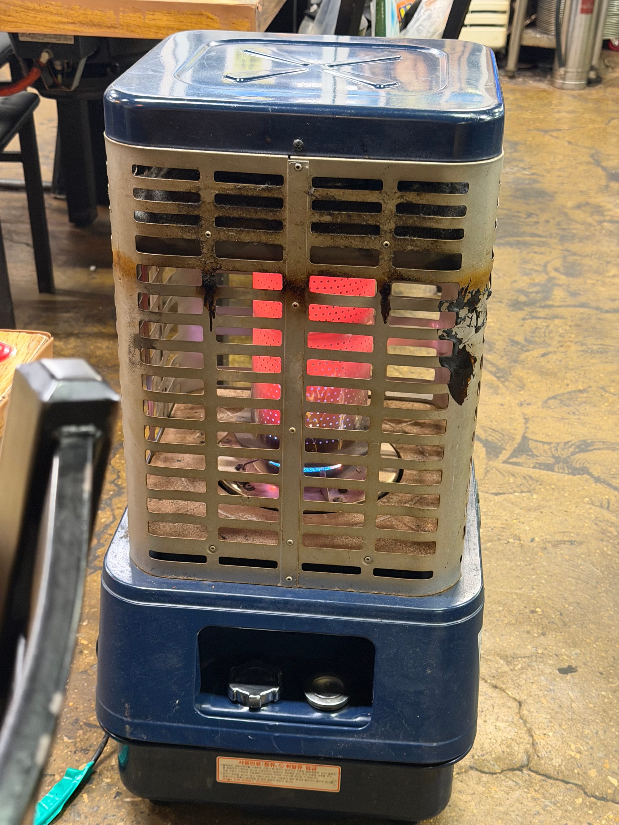 Inside, the atmosphere is cozy and inviting. A warm heater in the corner adds a touch of comfort against the winter chill, making the space feel even more welcoming before the meal begins.