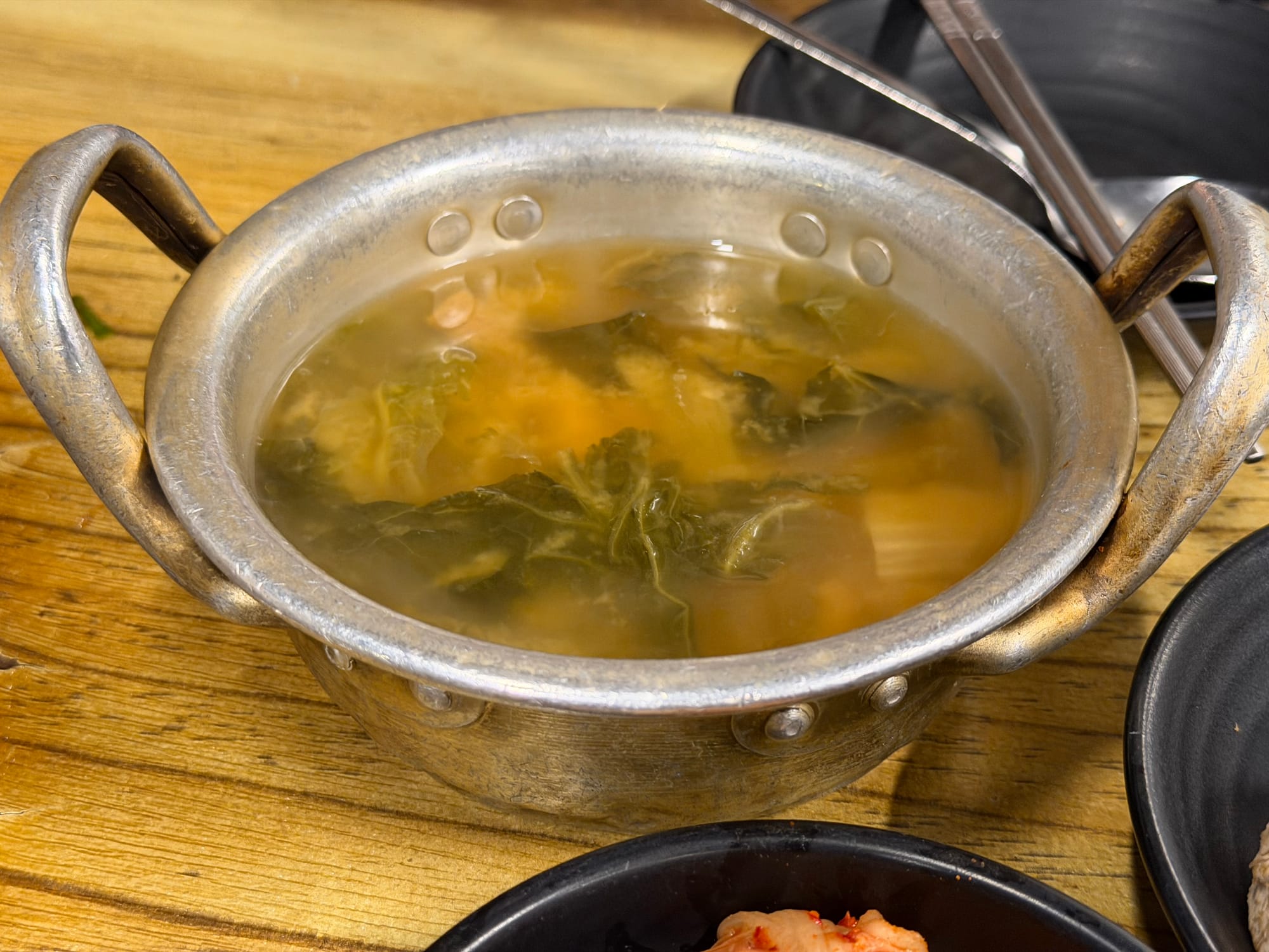 A traditional rib feast wouldn't be complete without a drink. Three bottles of Jinro Soju(진로 소주) accompanied the meal perfectly. To wrap up, a warm bowl of Ugeoji-guk(우거지국) served with rice provided a deep and satisfying finish.