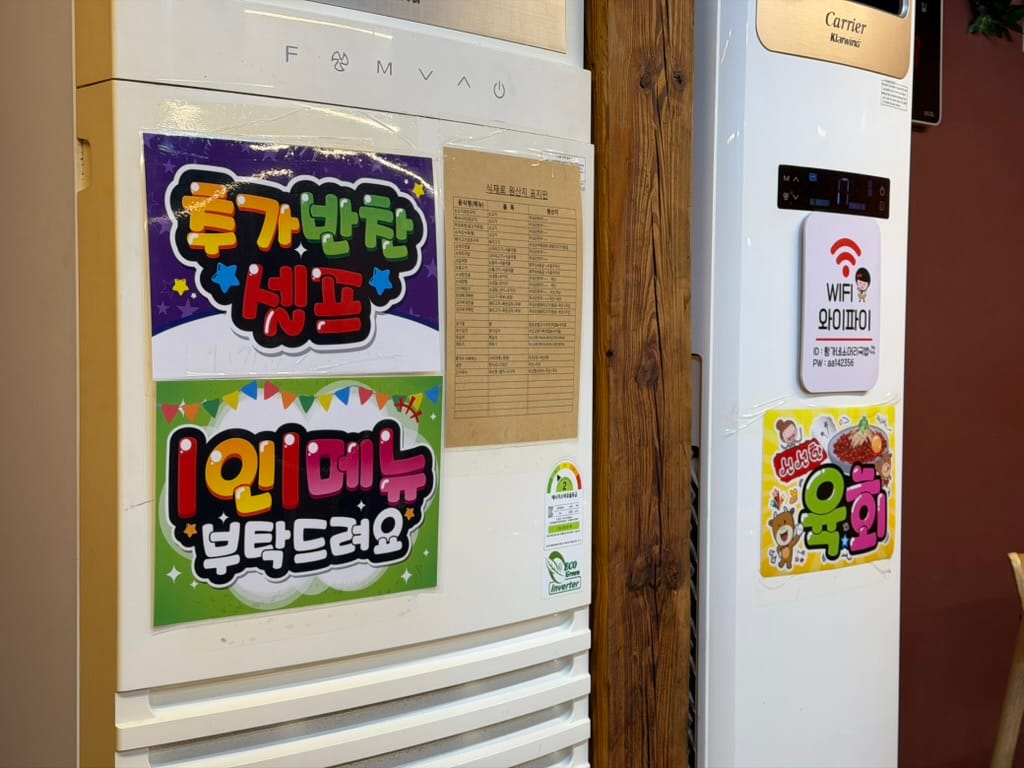 As a typical local spot, there are a few rules: self-service for extra side dishes and a one-menu-per-person policy. The origin of the ingredients is also clearly displayed, which adds to the trust.