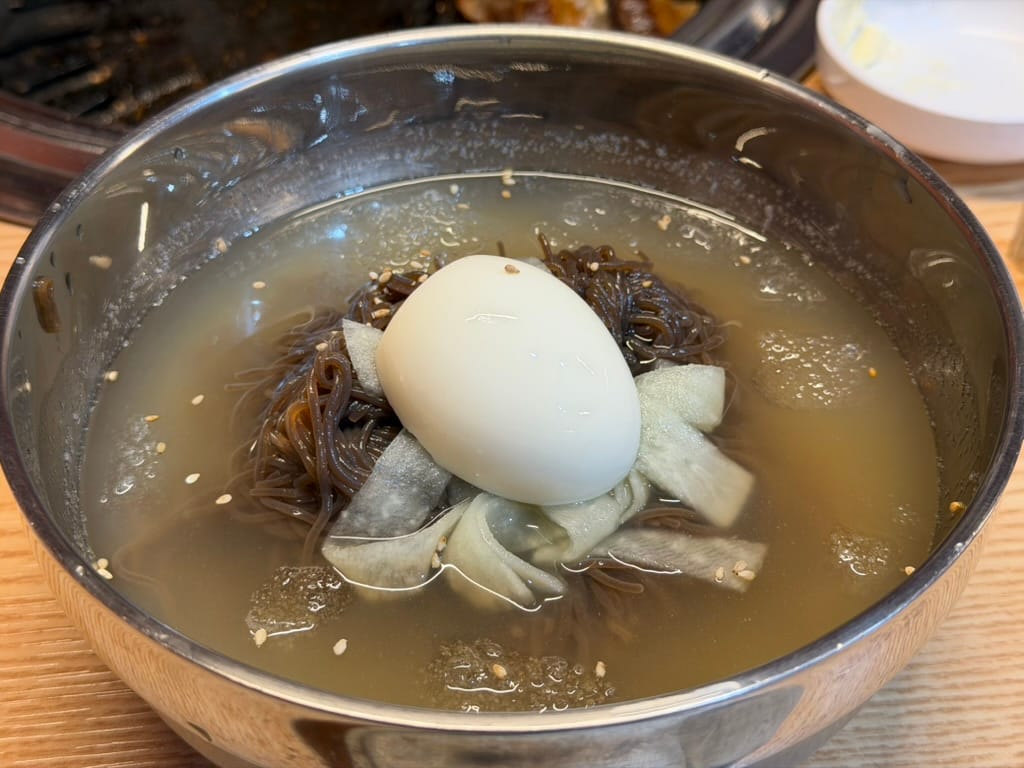To wrap up the meal, I ordered both Mul-naengmyeon(물냉면, cold buckwheat noodles) and Bibim-naengmyeon(비빔냉면, spicy cold noodles). The cold noodles are the best way to cleanse the palate after all that grilled meat.