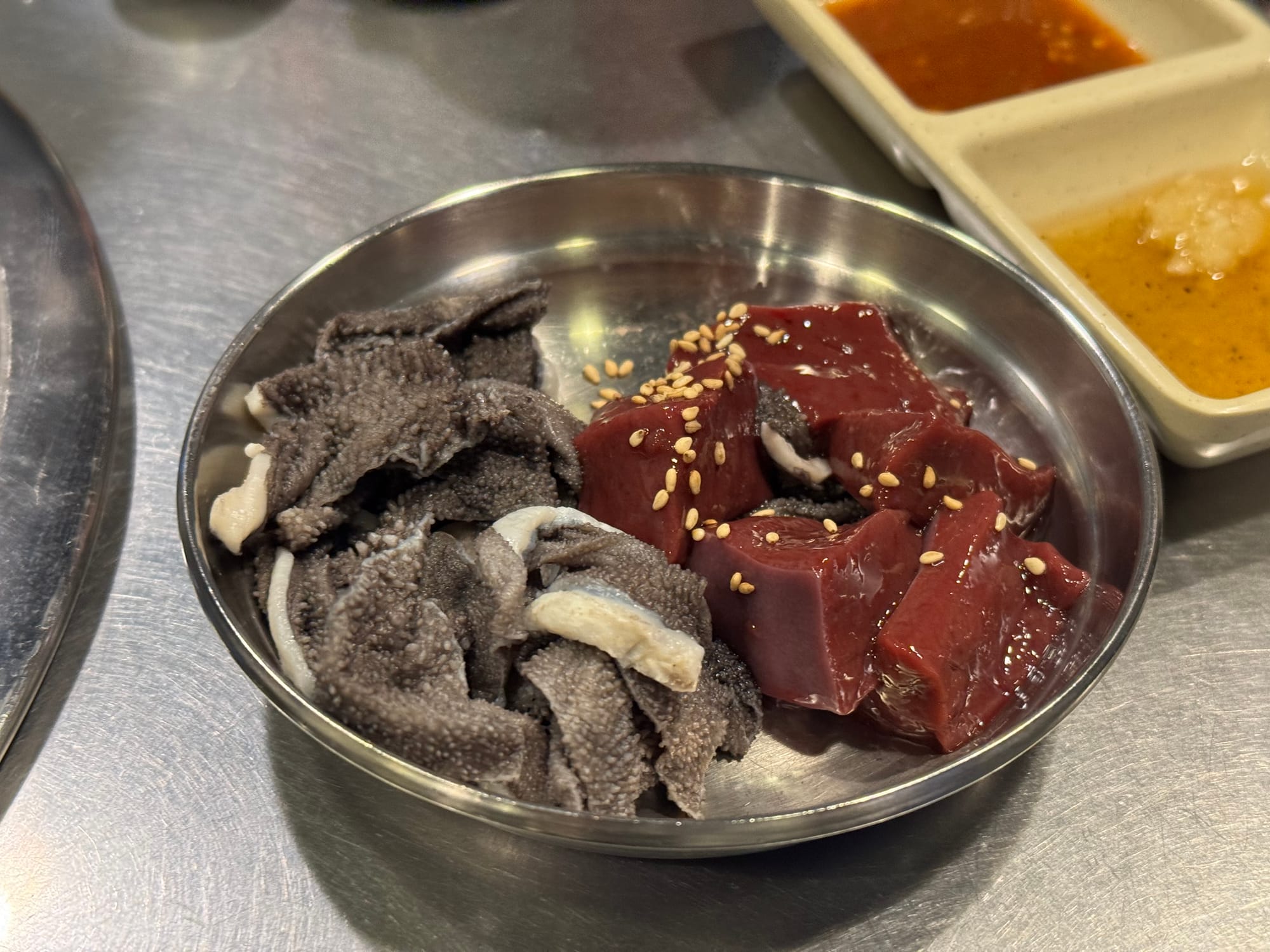 The fresh Gan(간) and Cheon-yeop(천엽) were of excellent quality, making them the perfect accompaniment for a drink even before the main dish arrived.