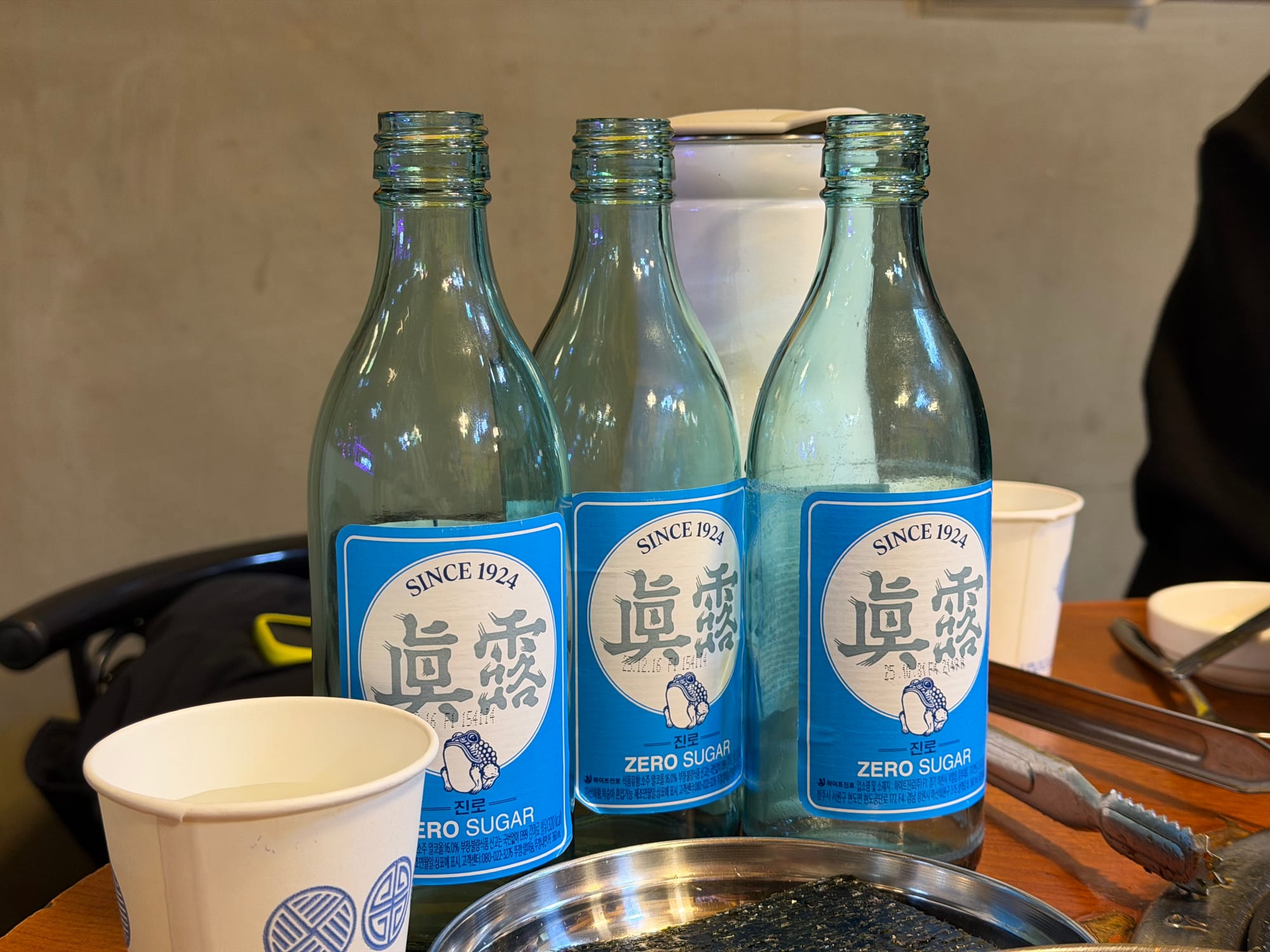 With such good food, the Soju(소주, Korean distilled spirit) went down easily. Before I knew it, we had finished three bottles of Jinro.